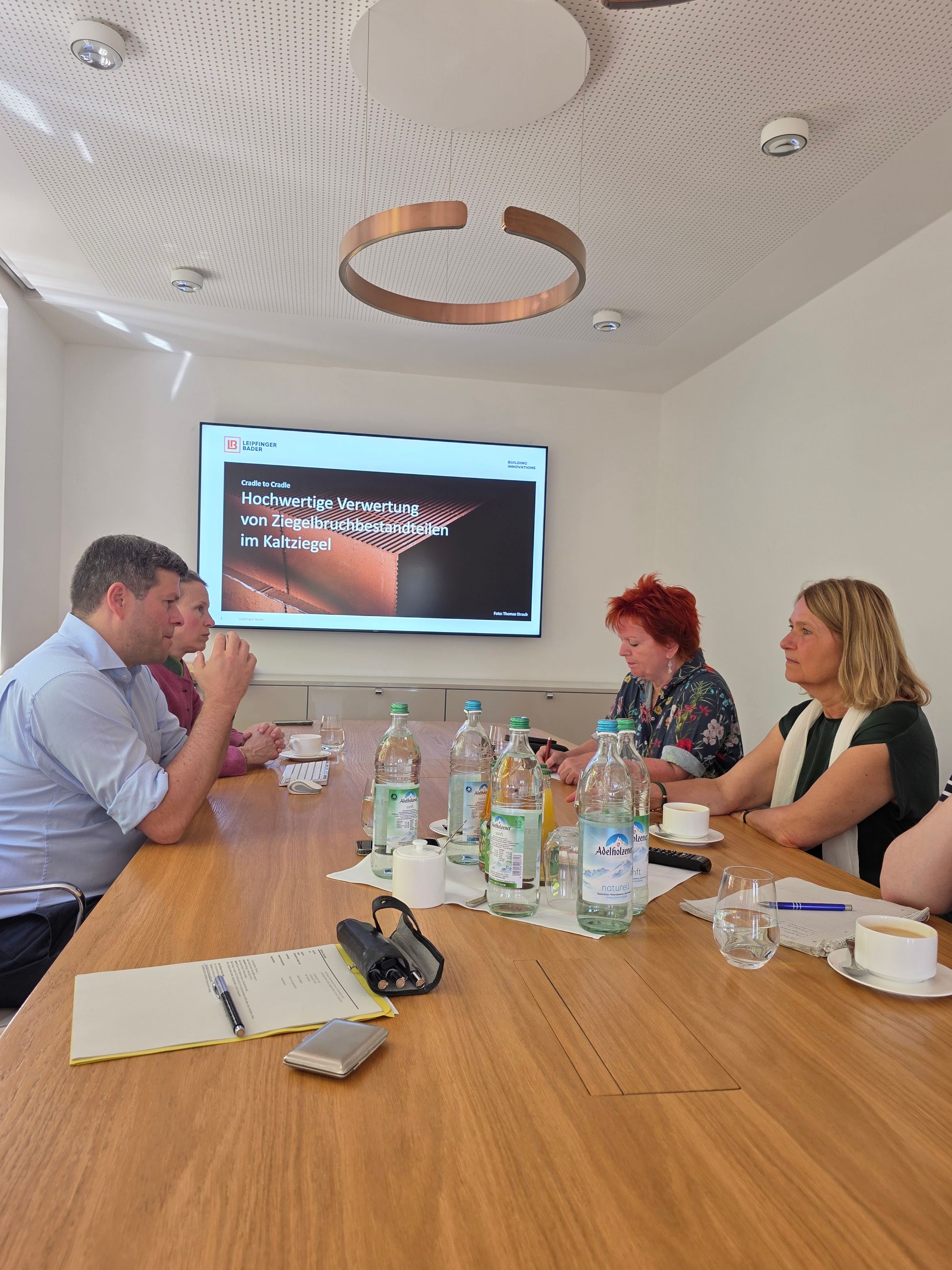Leipfinger‑Bader zählt zu den Vorreitern seiner Branche: Als erstes Ziegelwerk in Deutschland hat es einen vollständig geschlossenen Rohstoffkreislauf etabliert. In der firmeneigenen Recyclinganlage wird Ziegelbruch aufbereitet und zu neuen Produkten verarbeitet, zum Beispiel dem „Kaltziegel“ – einem Ziegel aus Recyclingmaterial, der ohne Brennen auskommt und somit eine positivere CO₂-Bilanz erreicht. Für dieses Konzept erhielt das Unternehmen 2023 den Bayerischen Ressourceneffizienzpreis.