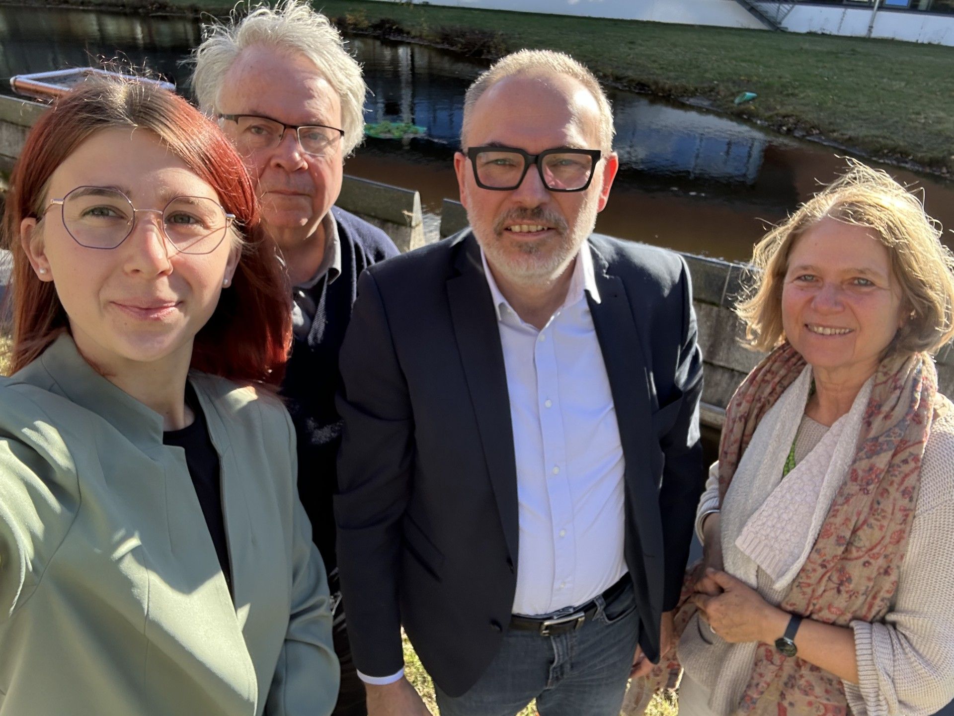Hof (10.11.2025). 2025 wurden an der FH Hof sowohl für Wassersysteme als auch für Wärmedämmstoffe innovative Projekte ins Leben gerufen. Daher waren nun die baupolitische Sprecherin der Landtagsgrünen, Ursula Sowa, und die beiden Vorstandsmitglieder des regionalen Kreisverbands, Dr. Harald Schmalfuß und Viktoria Denzler, zu Gast an der Hochschule, um sich umfassend zu „Aquatex“ und „Mycobuild“ zu informieren.